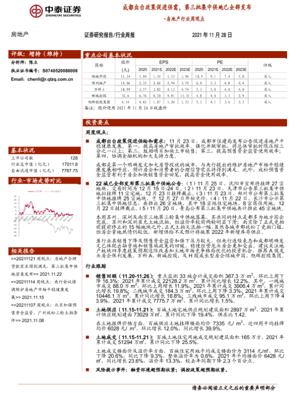 【中泰证券】【20211128】成都出台政策促进供需,第三批集中供地已全部发布-11页 行业研究