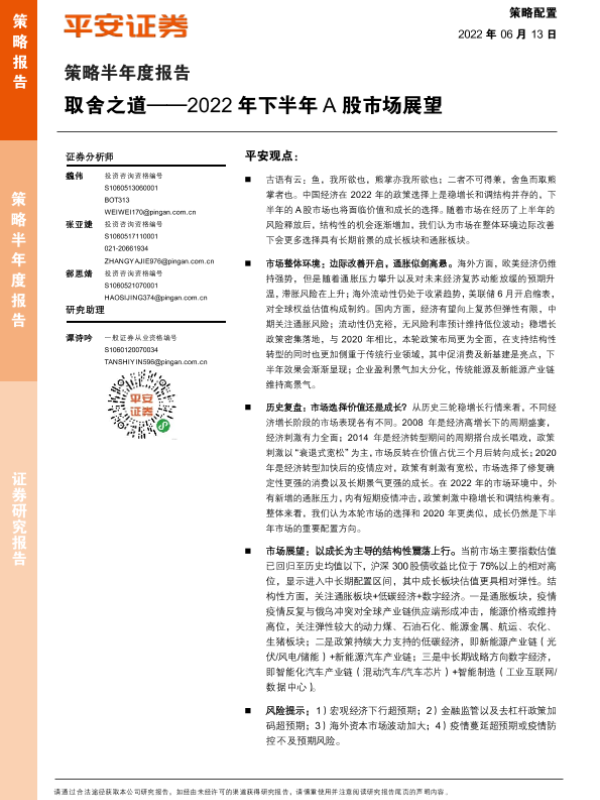 【平安证券】【20220613】策略半年度报告:2022年下半年A股市场展望,取舍之道-34页 行业研究