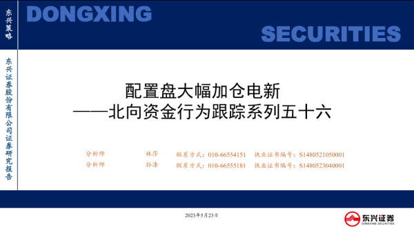 【东兴证券】【20230523】北向资金行为跟踪系列五十六:配置盘大幅加仓电新-26页 行业研究