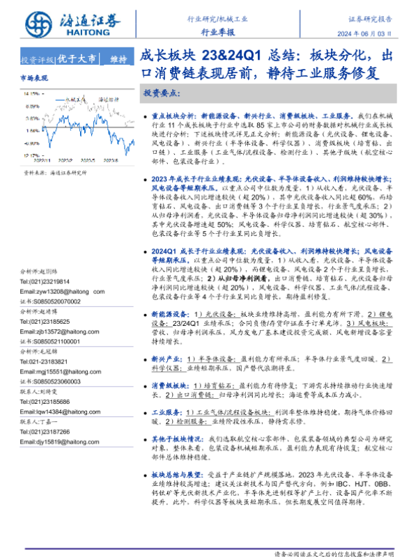 【海通证券】【20240603】机械工业行业成长板块23&24Q1总结:板块分化,出口消费链表现居前,静待工业服务修复-37页 行业研究
