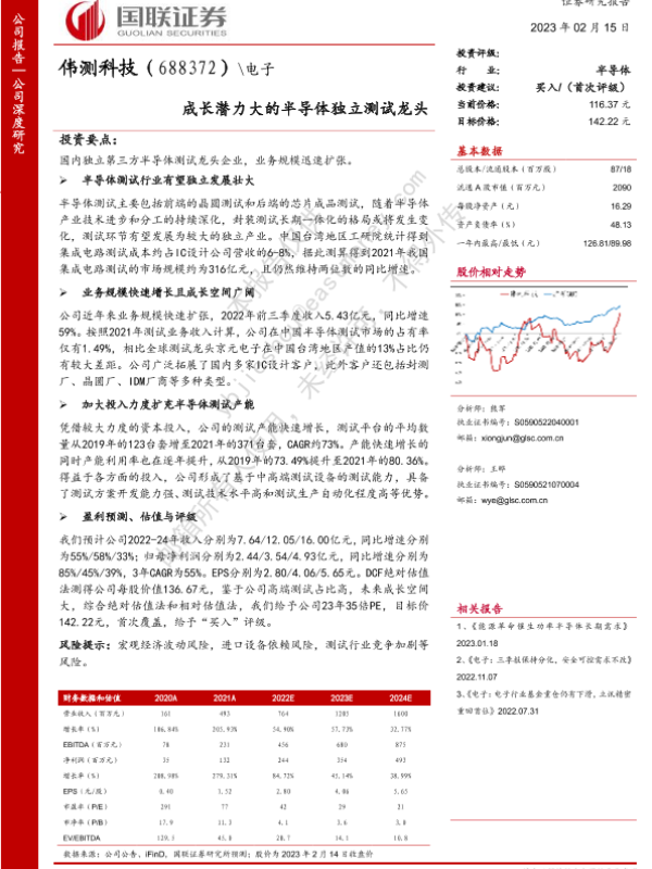 【国联证券】【20230215】伟测科技(688372)成长潜力大的半导体独立测试龙头-25页 行业研究