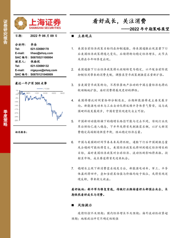 【上海证券】【20220609】2022年中期策略展望:看好成长,关注消费-38页 行业研究