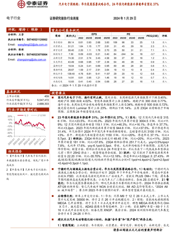 【中泰证券】【20240129】汽车电子周跟踪:华为岚图签署战略合作,24年国内新能源车渗透率有望达37%-14页 行业研究