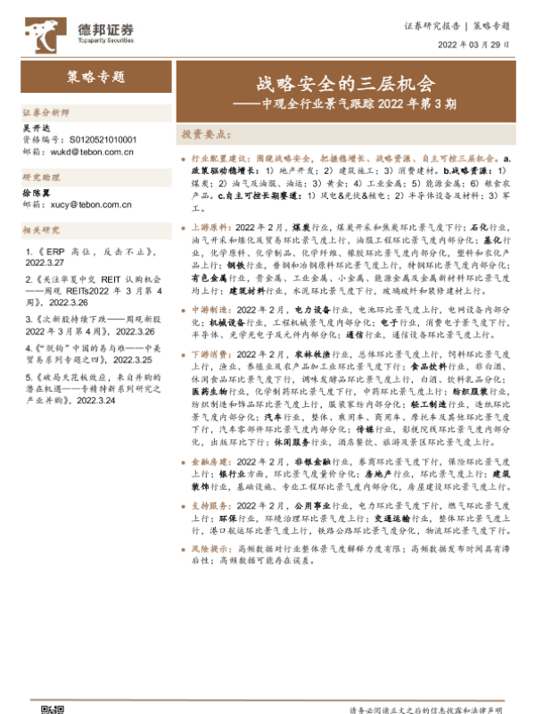【德邦证券】【20220329】中观全行业景气跟踪2022年第3期:战略安全的三层机会-47页 行业研究