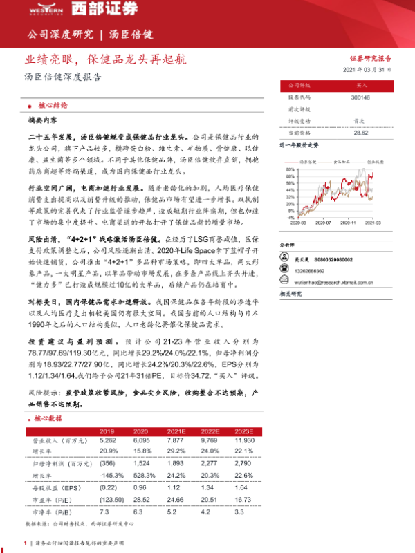 【西部证券】【20210331】2021.03.31-汤臣倍健:业绩亮眼,保健品龙头再起航-29页 行业研究