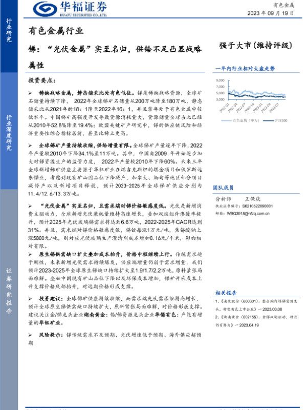 【华福证券】【20230919】锑:“光伏金属”实至名归,供给不足凸显战略属性-30页 行业研究