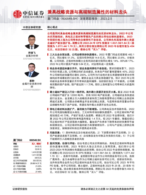 【中信证券】【20230205】厦门钨业(600549)深度跟踪报告:兼具战略资源与高端制造属性的材料龙头-33页 行业研究