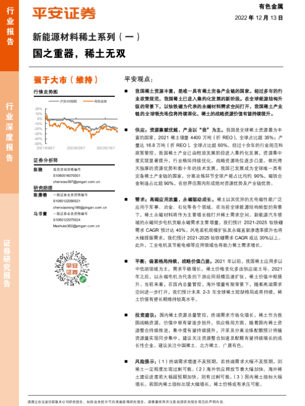 【平安证券】【20221213】新能源材料稀土系列(一):国之重器,稀土无双-22页 行业研究