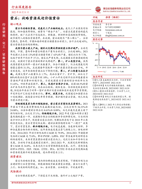 【东亚前海证券】【20221031】化工行业深度报告:萤石,战略资源或迎价值重估-41页 行业研究