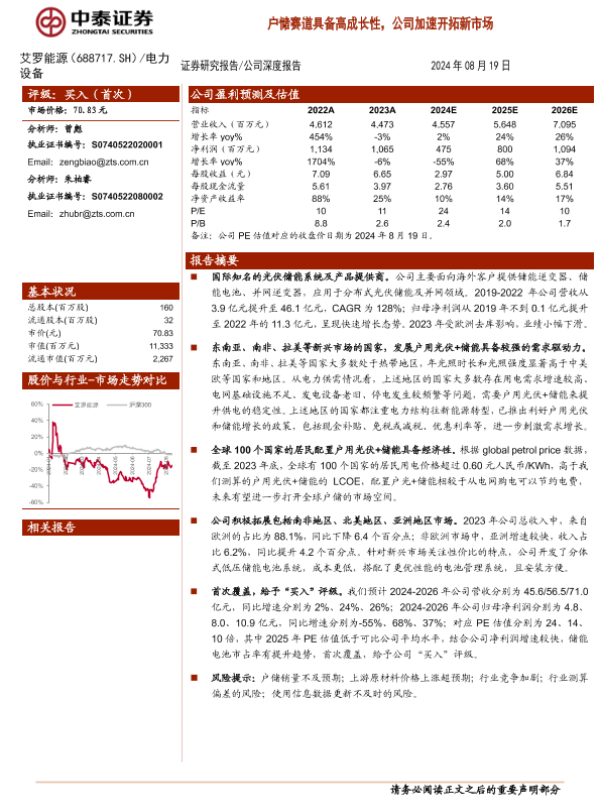 【中泰证券】【20240819】艾罗能源(688717)户储赛道具备高成长性,公司加速开拓新市场-30页 行业研究