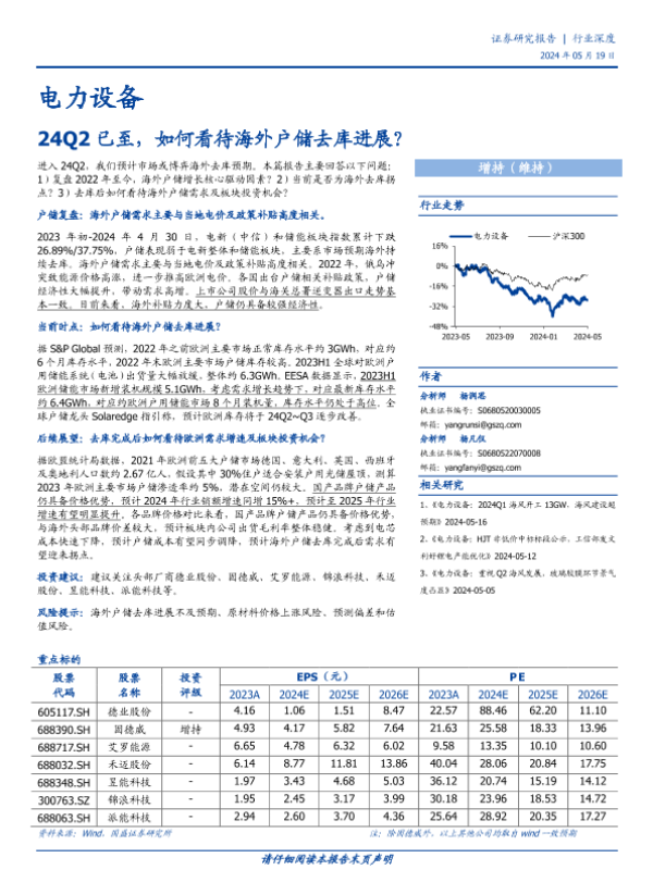 【国盛证券】【20240519】电力设备行业深度:24Q2已至,如何看待海外户储去库进展?-13页 行业研究