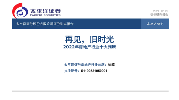 【太平洋证券】【20211220】2022年房地产行业十大判断:再见,旧时光-15页 行业研究