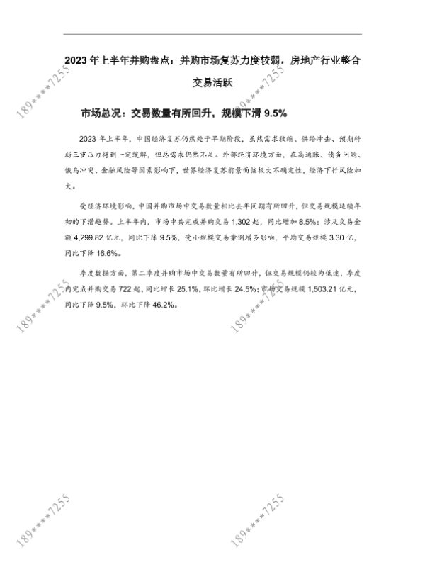 【清科研究中心】【20230630】2023年上半年并购盘点:并购市场复苏力度较弱,房地产行业整合交易活跃-9页 行业研究