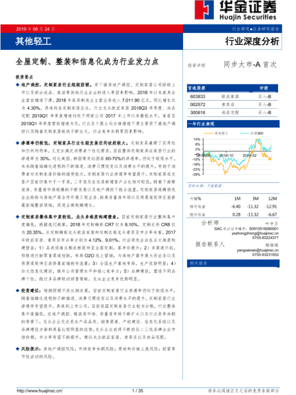 【华金证券】【20190624】其他轻工行业深度分析:全屋定制、整装和信息化成为行业发力点-35页 行业研究