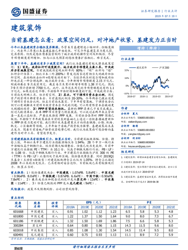 【国盛证券】【20190719】当前基建怎么看:政策空间仍足,对冲地产收紧,基建发力正当时-2页 行业研究