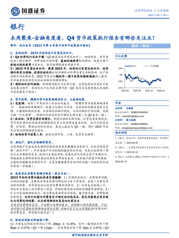 【国盛证券】【20230226】银行本周聚焦-金融角度看,Q4货币政策执行报告有哪些关注点?-12页 行业研究