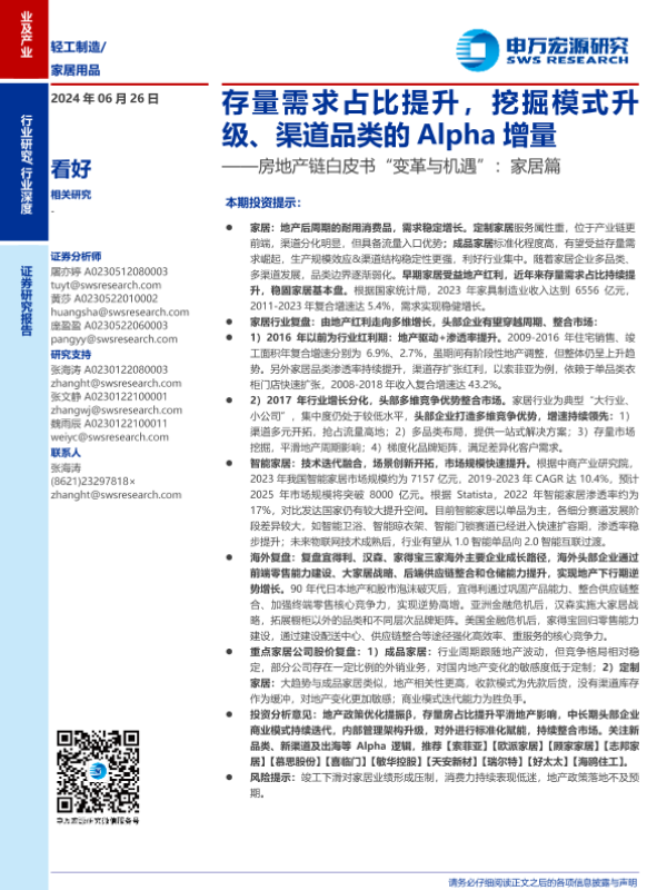 【申万宏源】【20240626】家居用品行业房地产链白皮书“变革与机遇”:家居篇,存量需求占比提升,挖掘模式升级、渠道品类的Alpha增量-33页 行业研究
