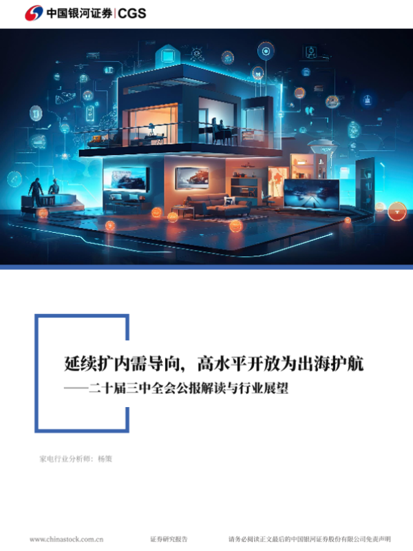 【银河证券】【20240722】家用电器行业二十届三中全会公报解读与行业展望:延续扩内需导向,高水平开放为出海护航-20页 行业研究