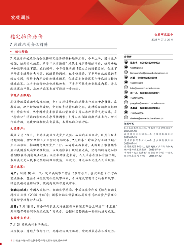 【西部证券】【20250720】7月政治局会议前瞻:稳定物价房价-16页 宏观策略