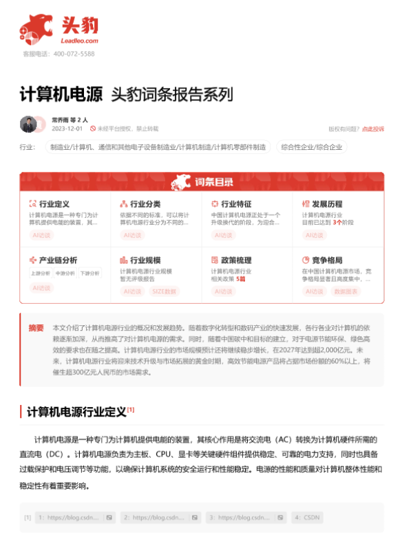 【头豹研究院】【20231201】20240102-头豹研究院-计算机电源 头豹词条报告系列-17页 行业研究