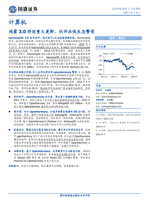 【国盛证券】【20220725】20220725-国盛证券-计算机行业周报:鸿蒙3.0将迎重大更新,伙伴共促生态繁荣-16页 行业研究