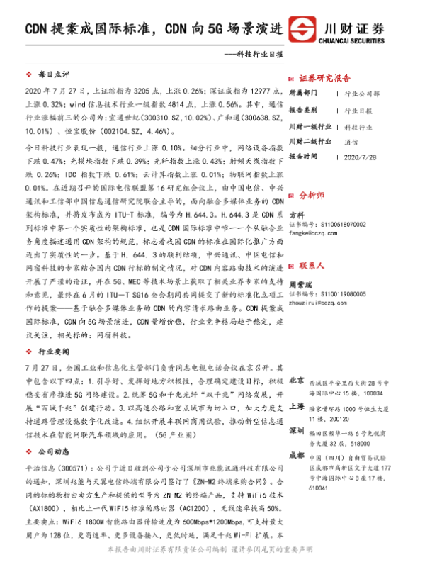 【川财证券】【20200728】科技行业日报:CDN提案成国际标准,CDN向5G场景演进-4页 证券期货研究报告