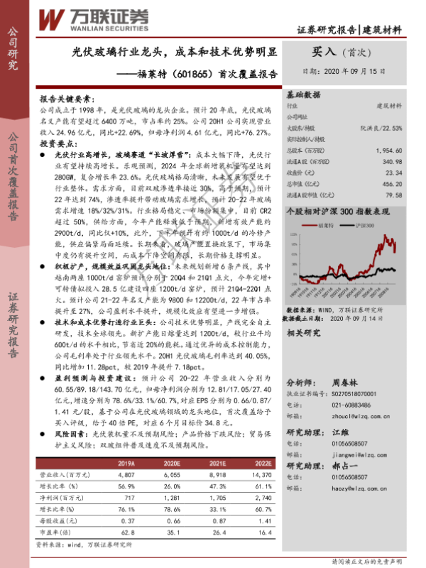 【万联证券】【20200915】20200915-万联证券-福莱特-601865.SH-首次覆盖报告:光伏玻璃行业龙头,成本和技术优势明显-28页 行业研究