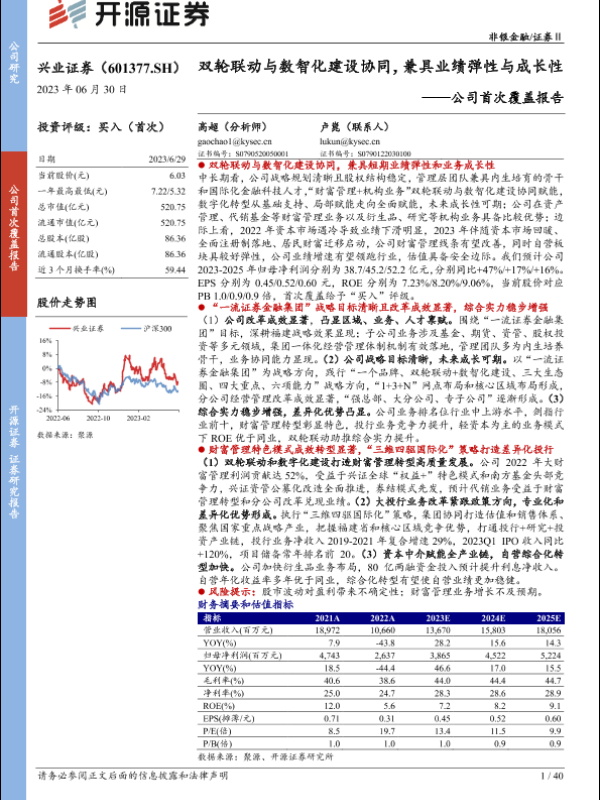 【开源证券】【20230630】兴业证券(601377)公司首次覆盖报告:双轮联动与数智化建设协同,兼具业绩弹性与成长性-40页 行业研究