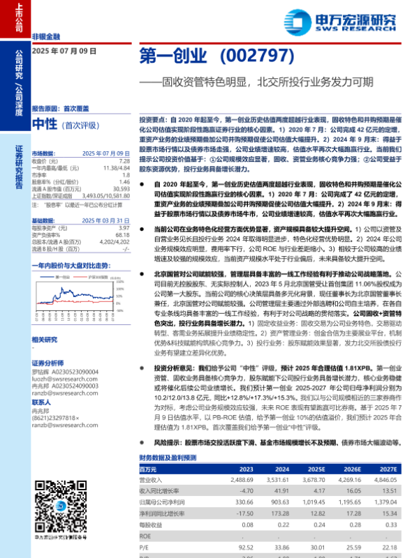 【申万宏源】【20250709】第一创业固收资管特色明显,北交所投行业务发力可期-22页 公司研究