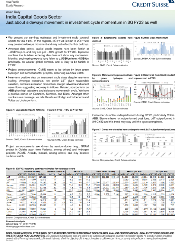 【Credit Suisse】【20230104】India Capital Goods Sector-9页 行业研究