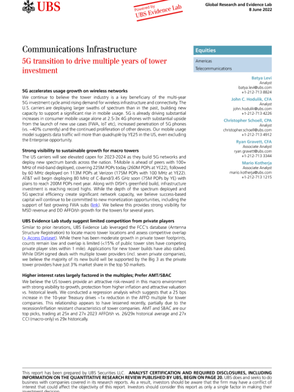 【瑞银】【20220608】通信基础设施:5G过渡将推动多年来的铁塔站点投资-29页 行业研究
