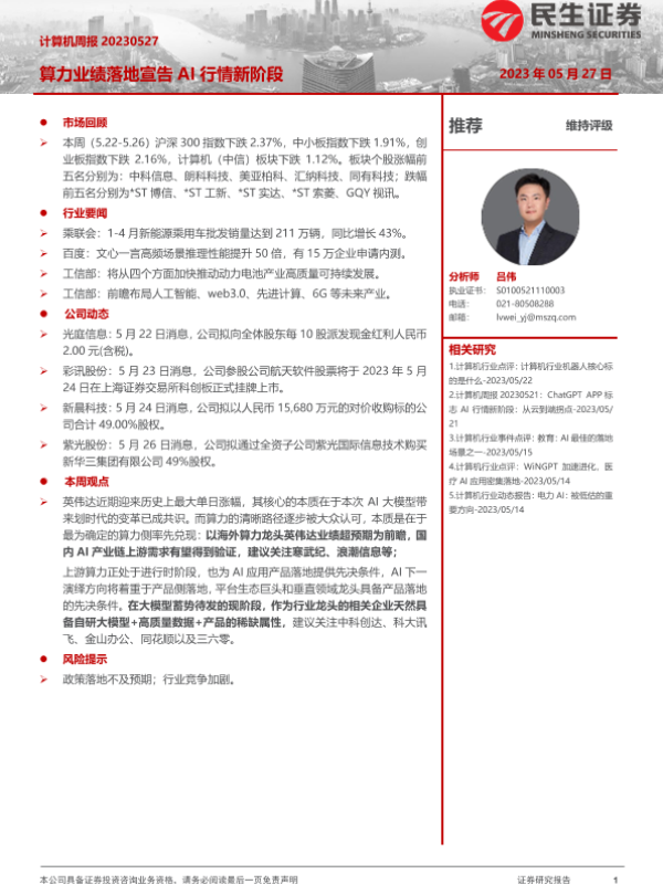 【民生证券】【20230527】20230527-民生证券-计算机周报:算力业绩落地宣告 AI行情新阶段-25页 行业研究
