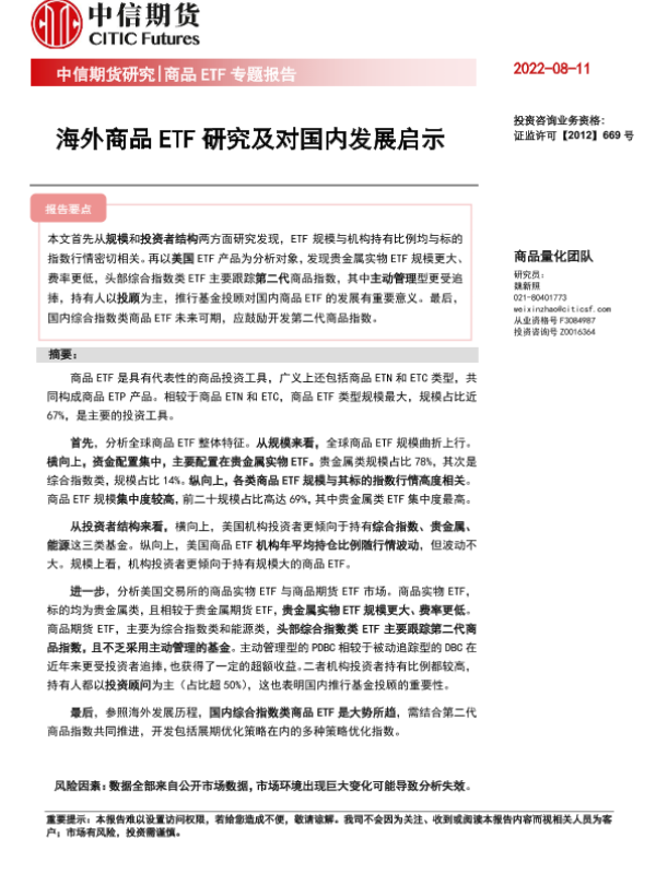 【中信期货】【20220811】商品ETF专题报告:海外商品ETF研究及对国内发展启示-24页 行业研究