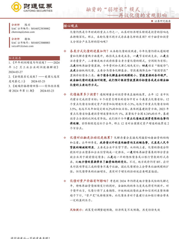 【财通证券】【20240329】再议化债的宏观影响:融资的“弱增长”模式-13页 行业研究