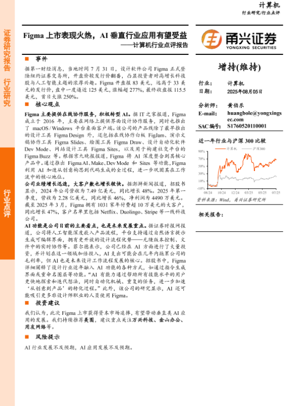 【甬兴证券】【20250805】Figma上市表现火热,AI垂直行业应用有望受益-3页 行业研究