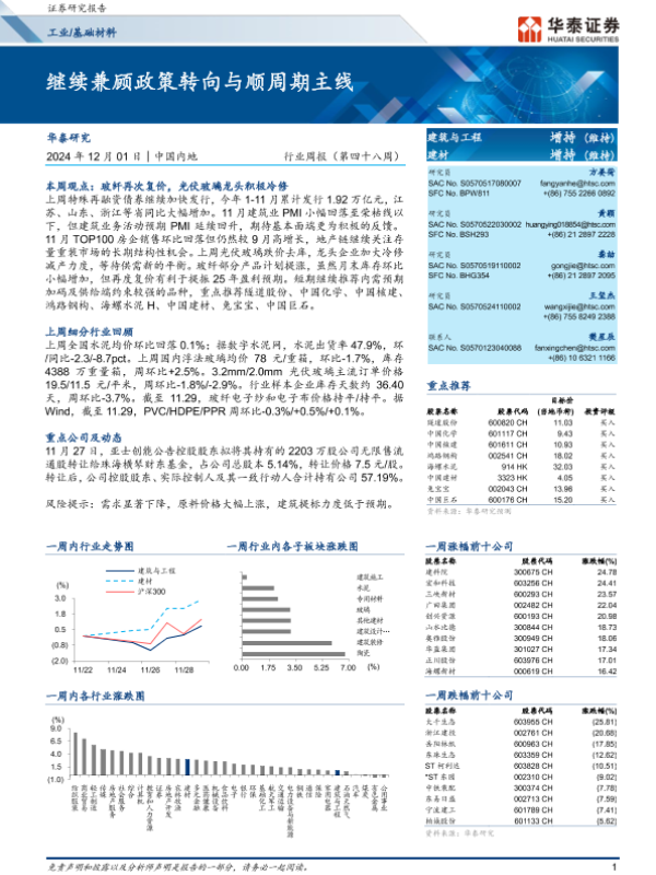 【华泰证券】【20241201】建筑与工程行业周报(第四十八周):继续兼顾政策转向与顺周期主线-15页 行业研究