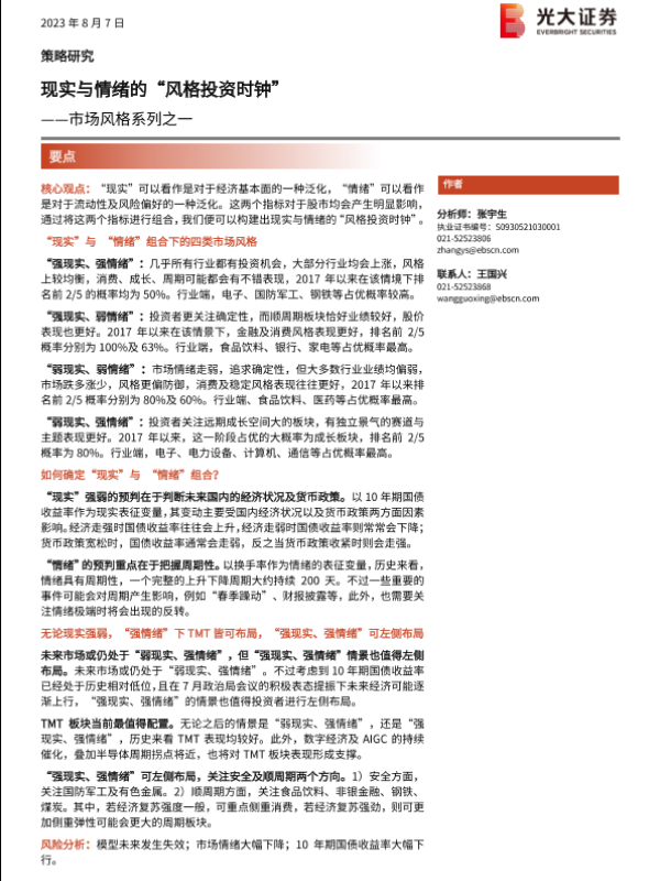 【光大证券】【20230807】策略深度:市场风格系列之一,现实与情绪的“风格投资时钟”-27页 行业研究