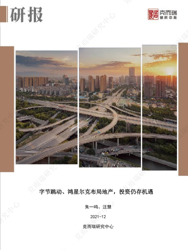 【克而瑞研究中心】【202112】字节跳动、鸿星尔克布局地产,投资仍存机遇-5页 行业研究