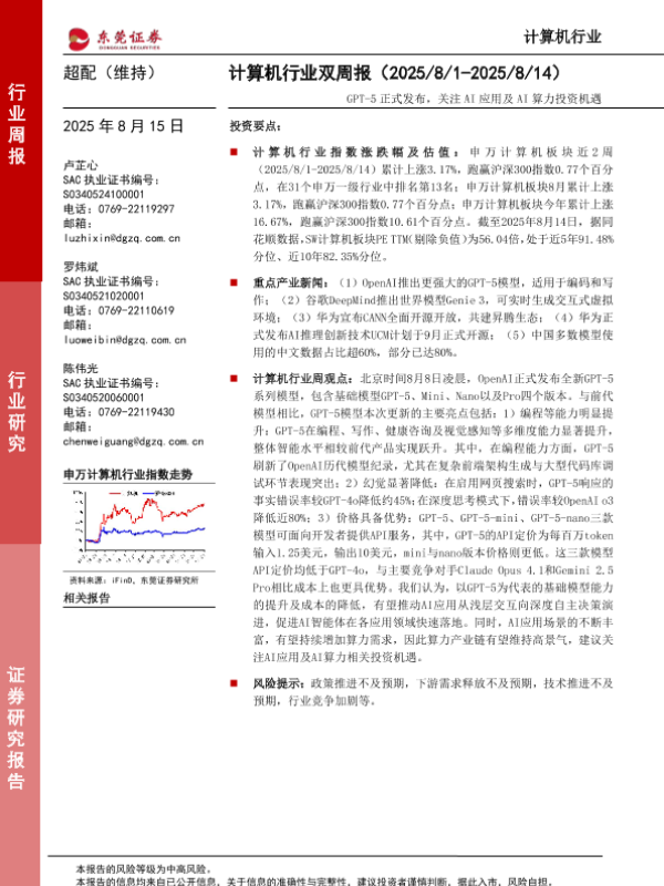 【东莞证券】【20250815】计算机行业双周报_GPT-5正式发布_关注AI应用及AI算力投资机遇-9页 证券期货研究报告
