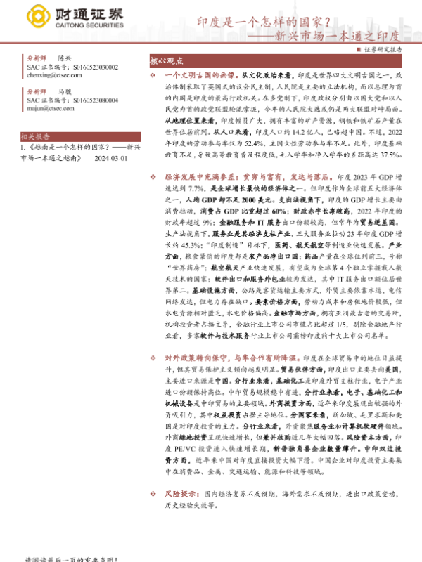 【财通证券】【20240320】新兴市场一本通之印度:印度是一个怎样的国家?-51页 行业研究