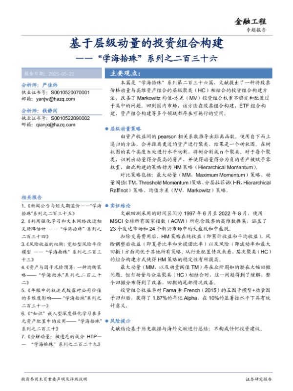 【华安证券】【20250521】基于层级动量的投资组合构建-17页 证券期货研究报告