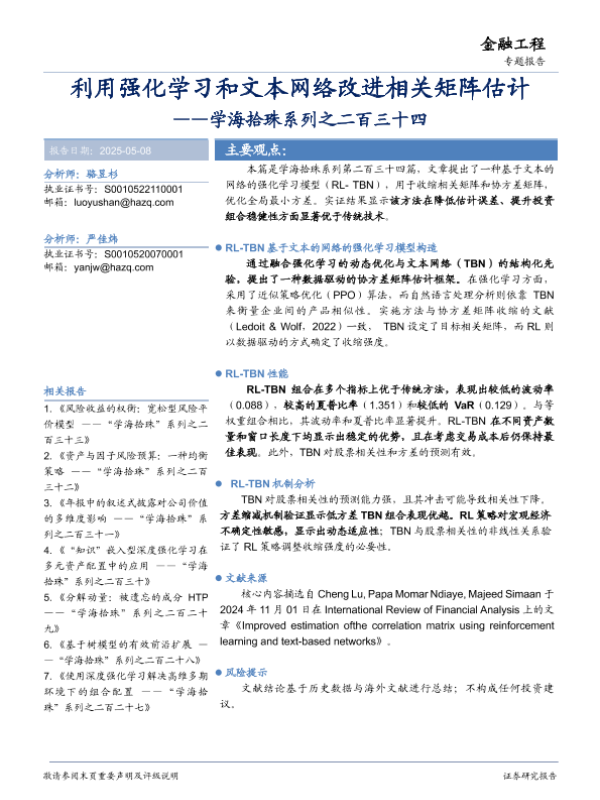 【华安证券】【20250508】利用强化学习和文本网络改进相关矩阵估计-28页 证券期货研究报告