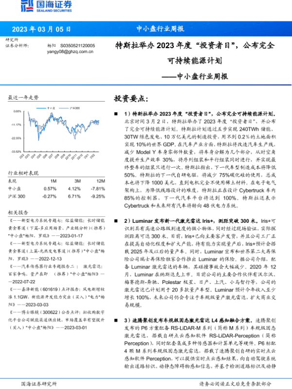 【国海证券】【20230305】中小盘行业周报:特斯拉举办2023年度“投资者日”,公布完全可持续能源计划-19页 行业研究