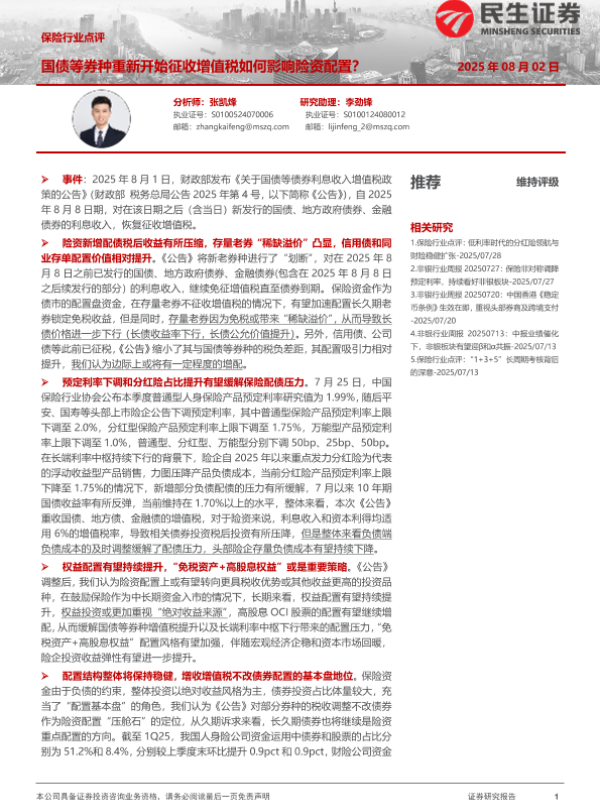 【民生证券】【20250802】国债等券种重新开始征收增值税如何影响险资配置-7页 证券期货研究报告