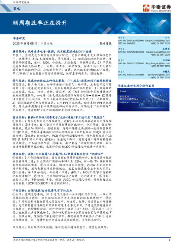 【华泰证券】【20230905】策略月报:顺周期胜率正在提升-34页 行业研究