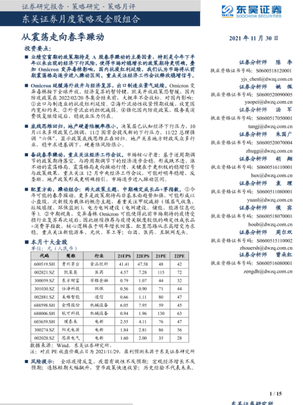 【东吴证券】【20211130】月度策略及金股组合:从震荡走向春季躁动-15页 行业研究