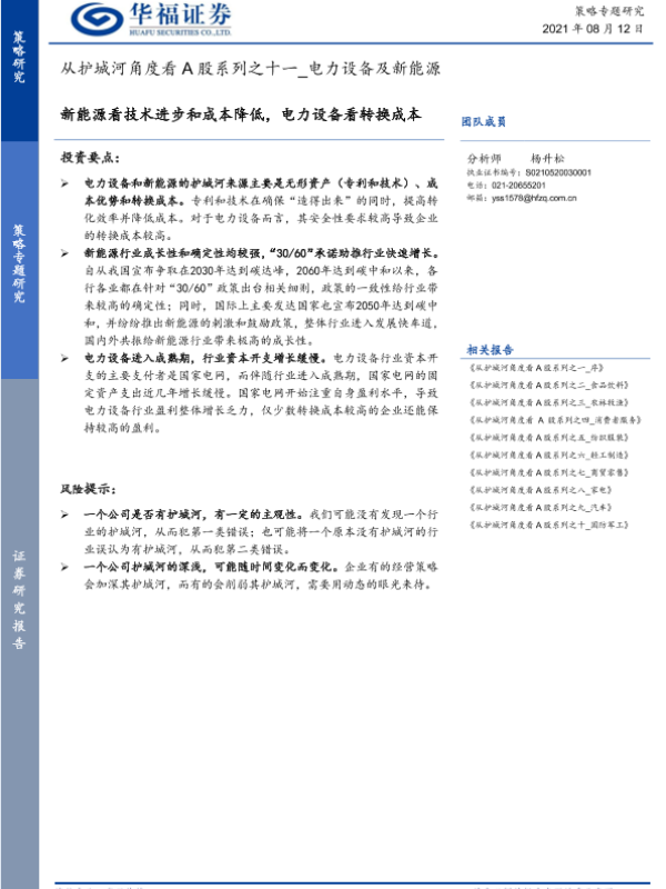 【华福证券】【20210812】从护城河角度看A股系列之十一:电力设备及新能源-20页 行业研究