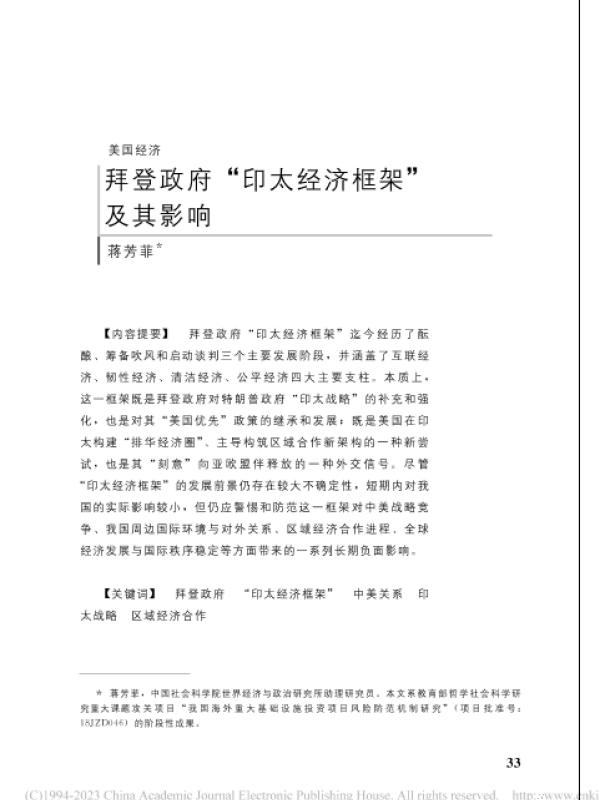 【中国社会科学院世界经济与政治研究所】【202205】拜登政府“印太经济框架”及其影响-18页 行业研究