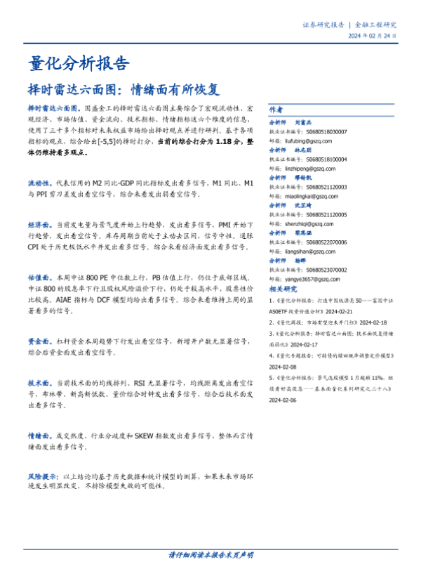 【国盛证券】【20240224】择时雷达六面图:情绪面有所恢复-23页 行业研究