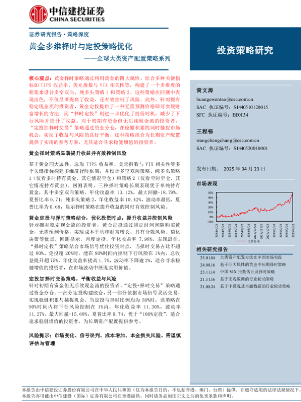 【中信建投证券】【20250423】全球大类资产配置策略系列:黄金多维择时与定投策略优化-22页 证券期货研究报告